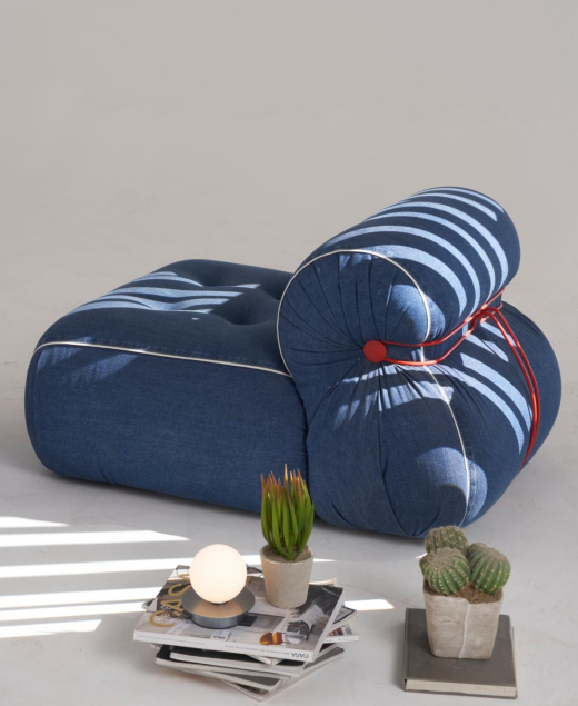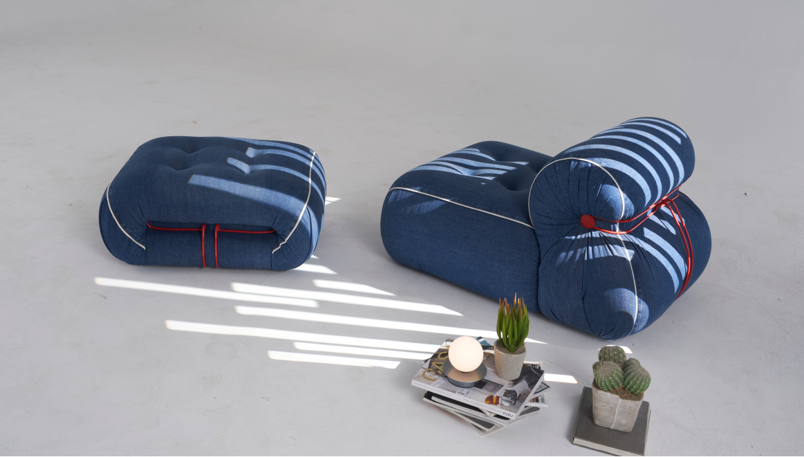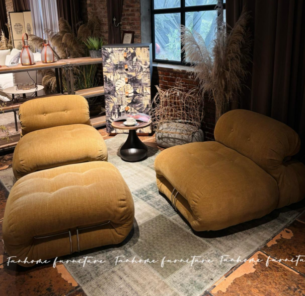 At the same time, it cancels the traditional internal support structure, the whole sofa is supported by polyurethane foam molding technology, and only a ring of steel will fix the sofa, the overall shape looks round and chubby, and it is comfortable to sit